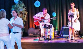 Wir machen gemütliche Livemusik, bringen angenehme Atmosphäre in passender Lautstärke für's Plaudern und Tanzen. Auf Wunsch lockern wir mit ein paar Spielchen die Stimmung der Gäste auf und in unseren Pausen spielen wir Musik vom iPad ein.